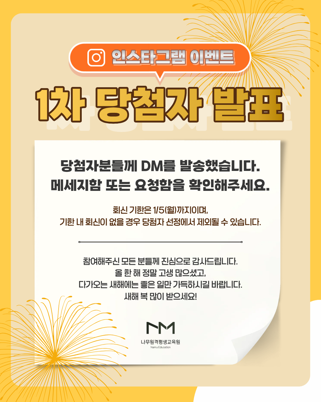 [나무교육 인스타그램 1차 이벤트 당첨자 확인 안내]