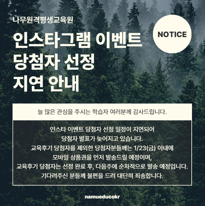 교육후기 당첨자를 제외한 당첨자분들께는 23일 이내에 모바일 상품권을 먼저 발송드릴 예정이며,