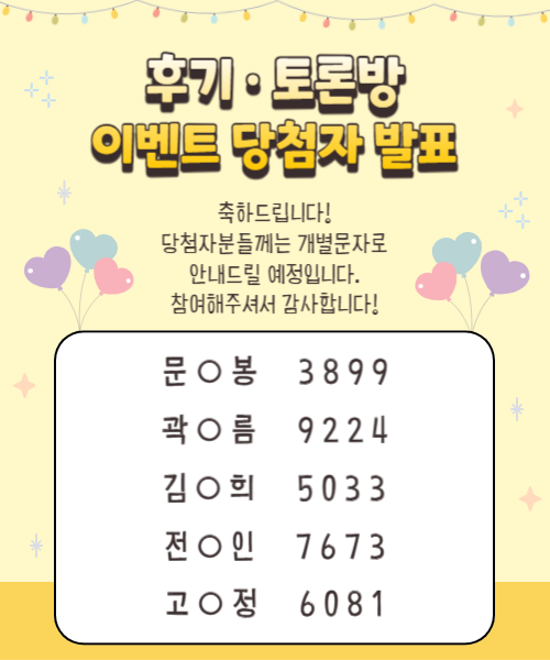 12월 후기이벤트 당첨자 발표합니다.