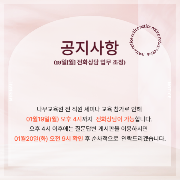 전화상담 업무조정(1월19일(월) 은 오후 4시까지 가능)
